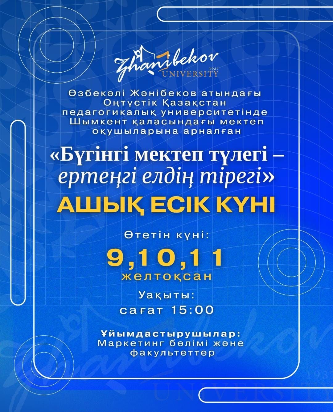 Болашақ түлектерге мамандық таңдау үшін кәсіптік бағдар беруге арналған “Бүгінгі мектеп түлегі — ертеңгі елдің жүрегі” атты ашық есік күні