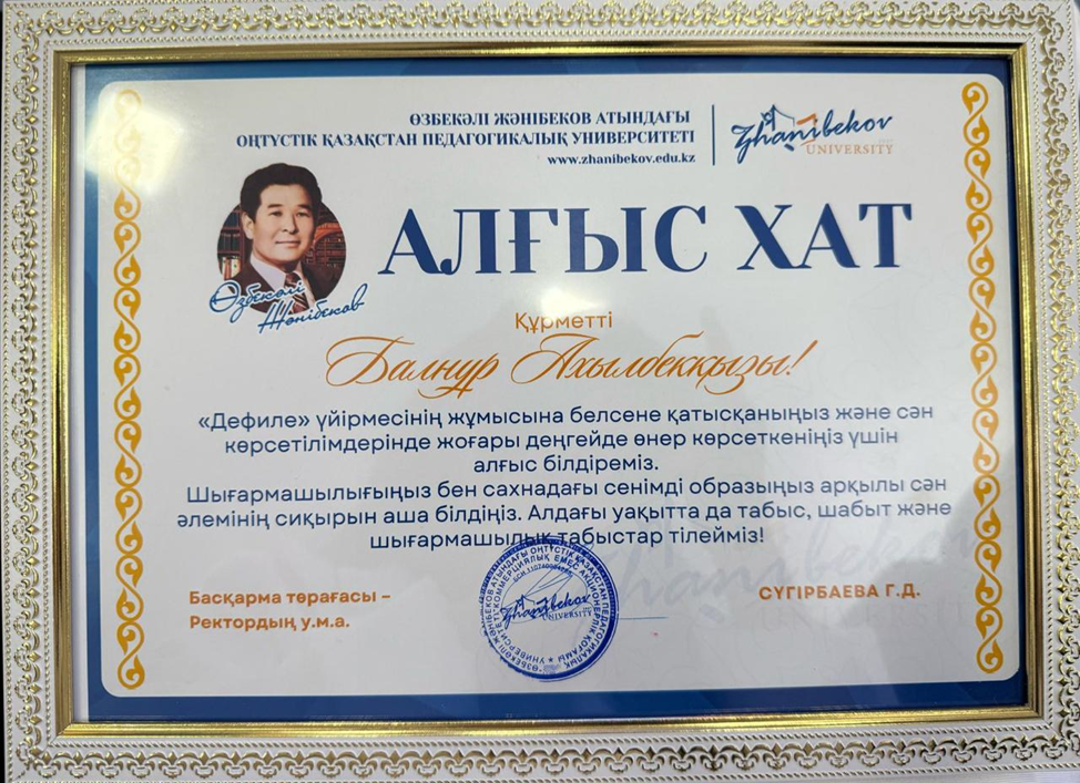 Letter of thanks Amanat Zhomartova G